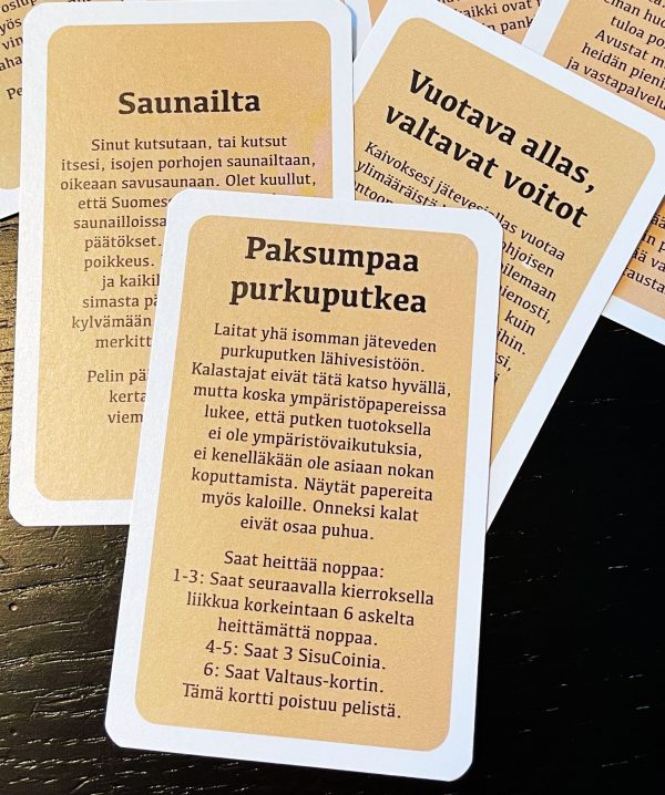 - Ainoa lautapeli, jossa voi pelata Porsaanreikä-kortin omaksi edukseen tai vaikka tehdä yhteyksiä hyväveliverkostoon 🙂